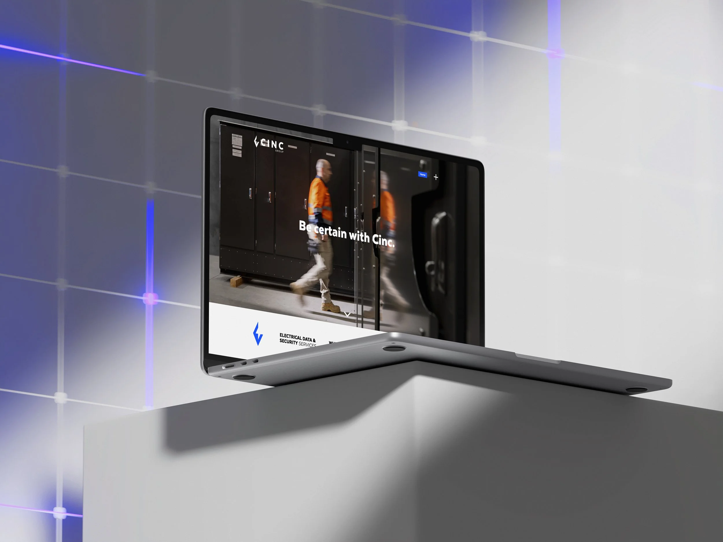 In the process of combining four companies into one unified entity, "cinc group," we created a distinct logo featuring an electric colour palette and solid typography. We developed a logomark that resembles both a diamond, symbolising strength and resilience under pressure, and the letter 'C'. This logomark became the cornerstone of cinc group's brand identity, seamlessly tying together submarks and establishing a cohesive foundation for the new company.